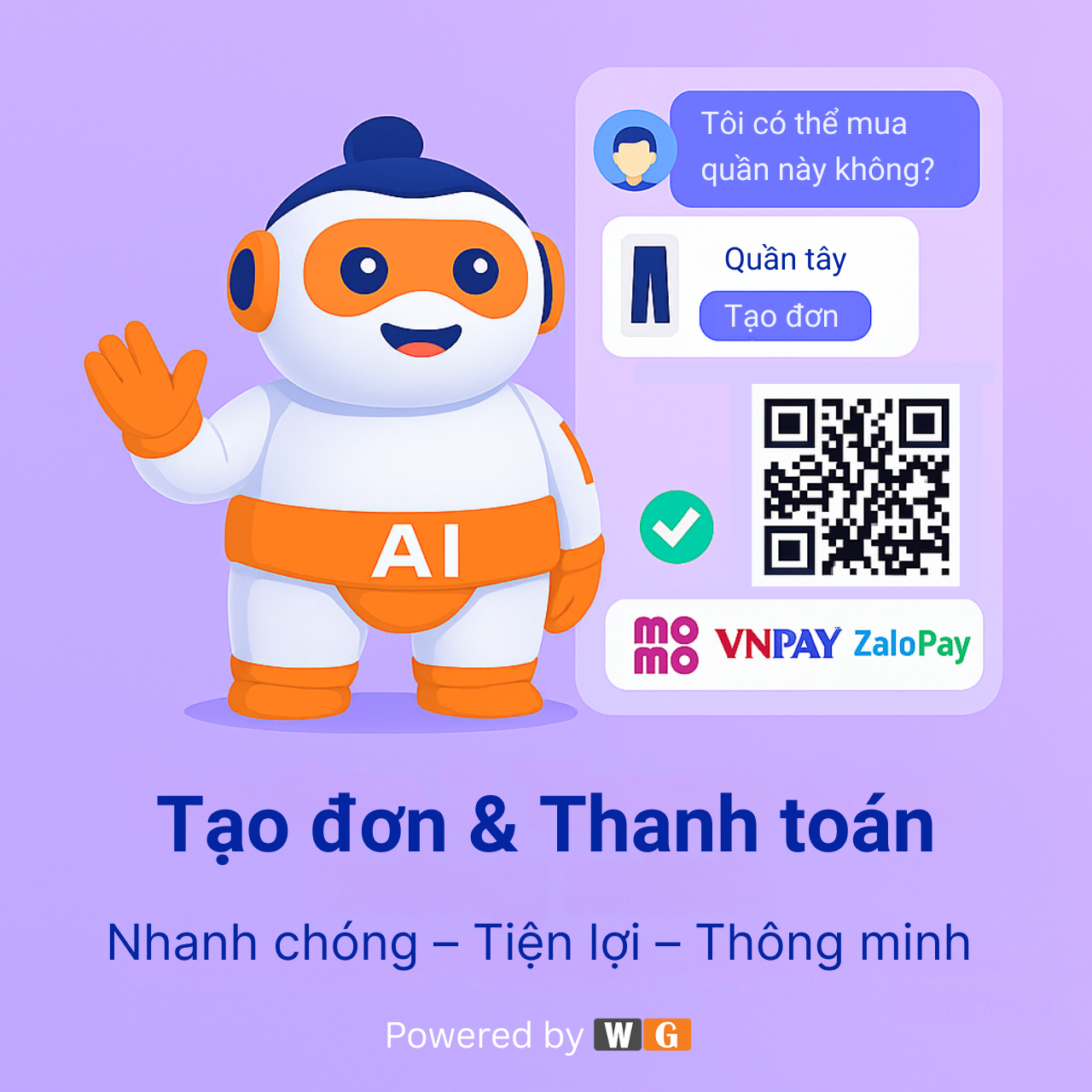 “Tư vấn – tạo đơn – gửi QR thanh toán – xác nhận chỉ trong vài giây.”